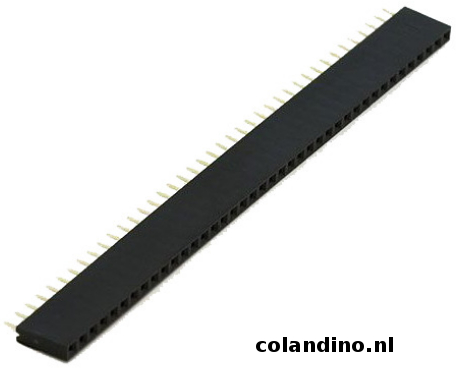 Female header 40 pinnen met een afstand van 2,54 mm tussen de pinnen en een zwarte kleur.