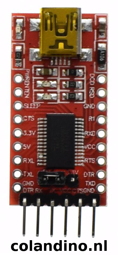 de FT232R is een USB naar seriële UART interface