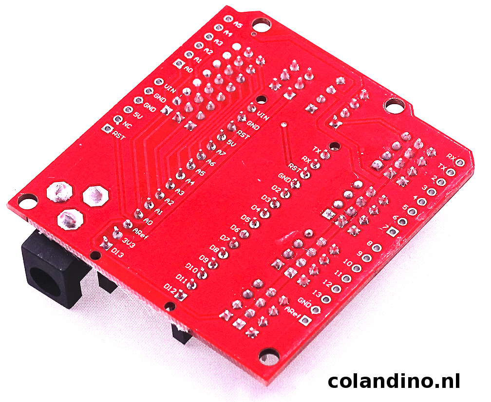 Deze shield maakt de Arduino Nano een stuk toegankelijker in het gebruik. Doordat deze shield alle I/O van de Arduino netjes groepeert in groepen met GND, SIGNAL en VCC.